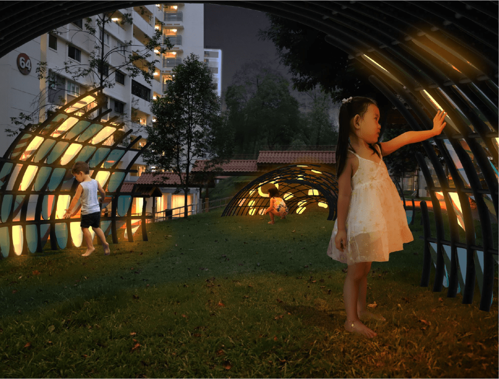 At night, the mysterious glow emitted prompts children’s curiosity to interact with nature beyond daylight.
