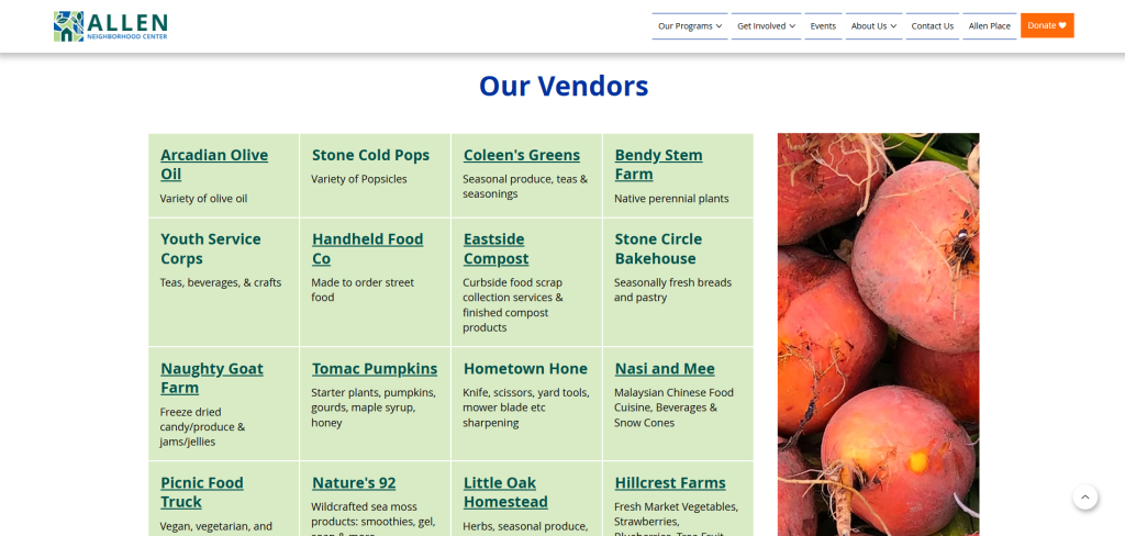 Vendors at ANC’s Farmers Market are constantly changing, introducing new local vendors to the community and the return of well-loved vendors. Utilizing CMS to manage the content allows non-technical staff to constantly update the information.